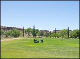 Mitten in der Mohave Wüste, direkt an der Route 66, liegt Kingman. Der städtische Golfplatz ist sehr weitläufig und befindet sich in einem guten Pflegezustand. Die Temperaturen sind sportlich: Wir waren in der Mittagssonne und 43 Grad unterwegs - immer auf der Suche nach einem Schattenplatz.