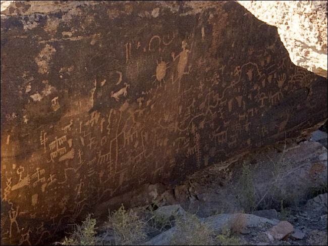 Newspaper Rock Felsritzzeichnungen (Petroglyphen) in der Paintet Desert