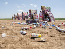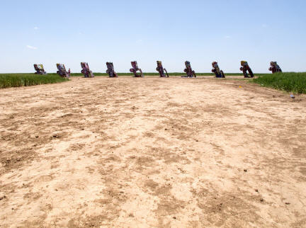 Gesponsort von Stanley Marsh III hat eine Künstlergruppe 1974 zehn Cadillacs unterschiedlicher Baujahre in einer Reihe und dem Winkel der Pyramiden von Gizeh eingegraben. Sie symbolisieren die "automobile Freiheit" und sind ein lebendes Kunstwerk. Auf einem der Fotos sehr Ihr mich mit einem Gruß an meine Familie. :-)