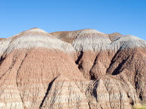 Verschiedene übereinanderliegende Gesteinsschichten sorgen für ein farbenprächtiges Naturschauspiel, Tausende von versteinerten Bäumen erstaunen den Besucher.