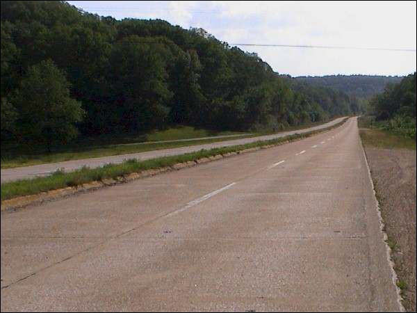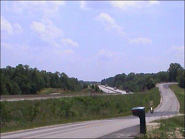 Wenige Kilometer danach ist dieses Foto entstanden. Die Interstate wurde auf weite Strecken entlang der alten Route66 gebaut. Die Route66 dient der Interstate dann als Zubringerstrasse (Business-Loop oder Frontage-Road.). Wobei die Route66 viel schöner zu fahren ist, als die Interstate. |