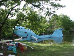 Kurz vor Catoosa gibt es gleich zwei schöne Motive: Die Twin Bridge, zwei gleich gebaute und parallele Brücken und Moby Dick. Dieser Wal liegt in einem vermoderten Badesee, der bessere Zeiten erlebt hat, als er noch für unzählige Familien willkommener Rastplatz an der Route66 war. |