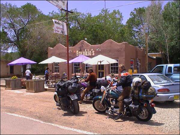 Santa Fe ist eine Kultstadt in den USA. Viele Orte entlang der Route66 sind architektonische Katastrophen, Santa Fe ist dagegen eine Perle: Häuser dürfen nur mit Lehmziegeln errichtet werden und das Hotel auf dem Bild gilt schon als "Hochhaus". Die Plaza in Santa Fe mit ihren schattenspendenden Bäumen und fröhlichen Menschen mag man gar nicht mehr verlassen. |