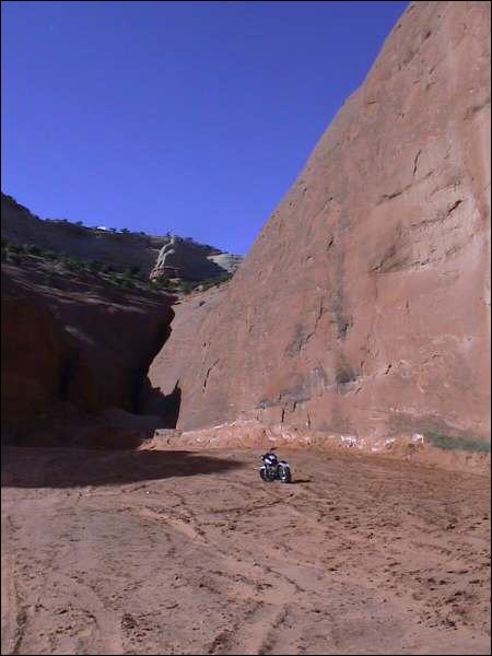 Gallup ist ein Indianerzentrum, in dem sich verschiedene Stämme zu "intertribal meetings" treffen. Die finden meist in der Freilichtbühne des Red Rock State Park statt. Als wir in diesem Park ankamen, waren wir bis auf ein paar Camper die einzigen Besucher. So konnten wir mit unseren Böcken überall hinfahren, aber seht selbst: |