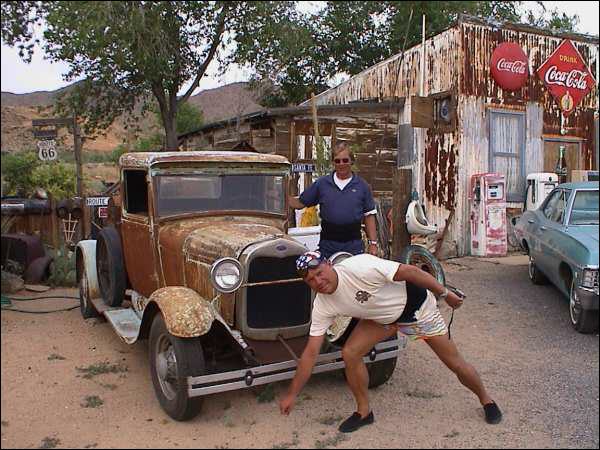In Kingman angekommen,, hatten wir alle zusammen vielleicht noch 5 Liter Benzin an Bord. Bei der Tankstelle haben wir uns erstmal ein paar Bier gegönnt. Da wir es bei dem traumhaften Wetter lieber draußen trinken wollten, hat uns der Tankwart die Flaschen in passgenaue Papiertüten gesteckt, aus denen wir sie dann trinken mussten. |