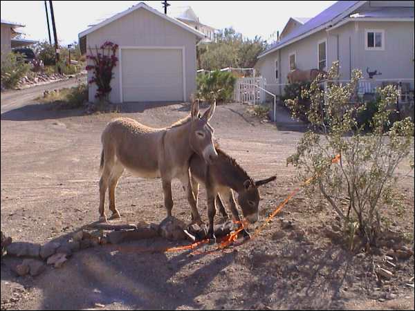 In Oatman beginnt die Mohave Wüste. Needles, nur ein paar Meilen weiter, gilt als der heisseste Ort Nordamerikas und wir hatten wohl einen besonders schlimmen Tag erwischt. Es waren (wirklich!) 50 Grad im Schatten und in der Sonne bestimmt 70 Grad Celsius. Je schneller wir gefahren sind, desto heisser wurde der Fahrtwind. Es war so, als ob man sich einen Föhn ins Gesicht hält und von der Stufe 1 auf die Stufe 2 stellt - soviel Hitze ist bestimmt nicht gesund... Ich habe soviel getrunken, wie ich konnte und musste trotzdem nicht einmal auf die Toilette. |