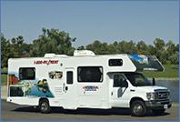 Zum Thema Sicherheit: Ganz kurz vor dem Ende der Reise ist einer von uns bei einer Vollbremsung rund 6 Meter durch das Wohnmobil geflogen. Dieser Unfall ist zum Glück einigermaßen glimpflich ausgegangen (fünf Minuten bewußtlos, Platzwunde am Kopf, die nicht genäht werden musste). Im Wohnmobil wird sich hinten keiner anschnallen - damit ist eine Reise im PKW deutlich sicherer. Foto: Unser Wohnmobil auf der Brücke am Devils Ellbow. |