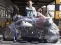 Der weitere Lauf: Mit einem LKW nach Paris, dann in einen Container, ins Flugzeug nach Chicago, dort zum Zoll und dann in die Lagerhalle zur Abholung.